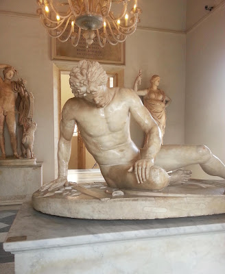 Da vi kom inn på museene hadde vi en guide som ledet oss gjennom hele turen slik av vi fikk kjennskap til historien bak skulpturene og andre gjenstander. I den første bygningen vi var innom var der blant annet gamle levninger av en kjempestatue av keiser Konstantin den store. I denne bygningen så vi også den kjente etruskiske bronsefiguren av en ulvinne som diet Romulus og Remus.